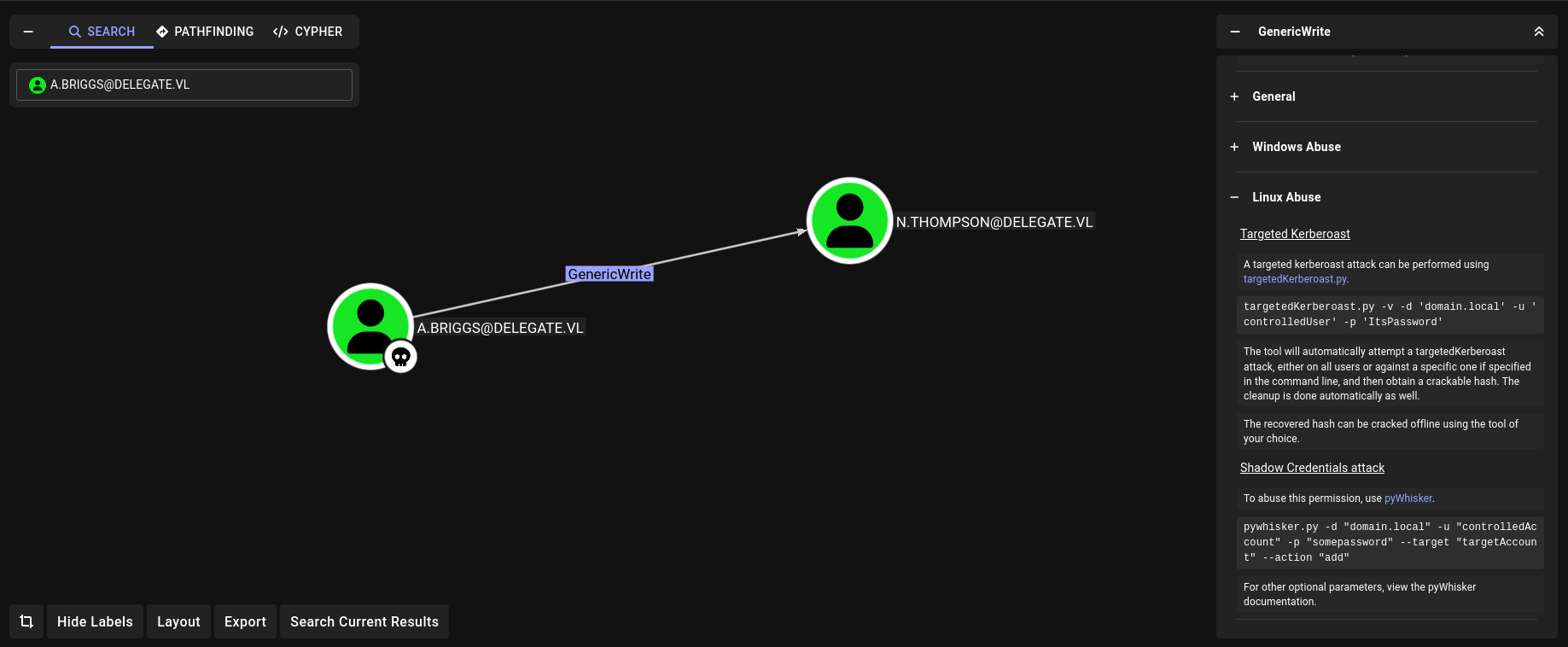 Delegate, another VL box on HackTheBox. There is a BAT script with creds on an SMB share which can be used for further enumeration. This user has generic write over another user who has remote access. I’ll Kerberoast that user, crack the hash, and use the password to get a shell on the machine. Looking at the privileges of this user, SeEnableDelegation is enabled. I’ll add a computer and its DNS, then perform unconstrained delegation to achieve DA.