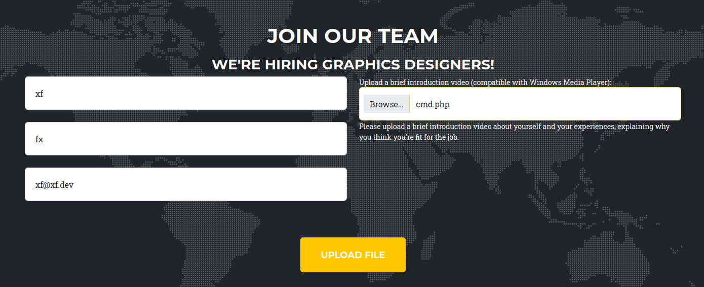 Note that, I’ll have to use the same detail for submitting the php webshell that I used for media file.