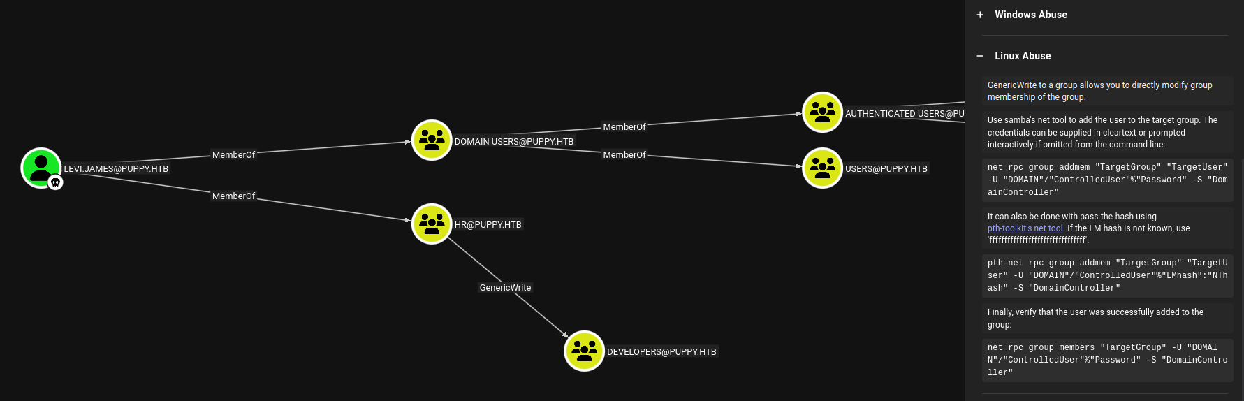 Puppy is another assumed-breach scenario machine from HackTheBox, where low-privileged levi.james