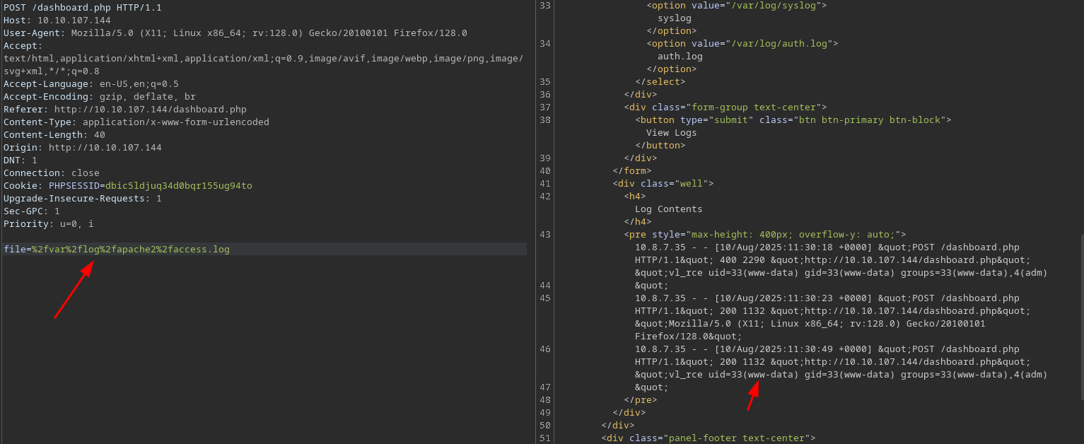 After getting access to dashboard I can exploit log poisoning to get a shell. To get shell as sadm