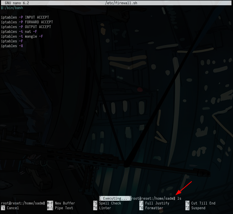 (ALL) PASSWD: /usr/bin/nano /etc/firewall.sh